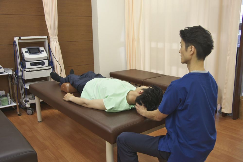 ・坐骨神経の流れ(腰~足先)に沿って痛みを緩和させる電気治療をする。